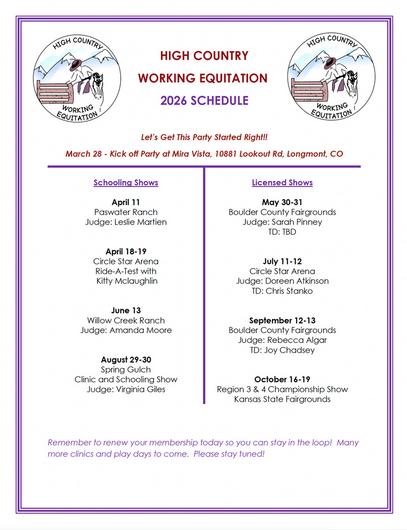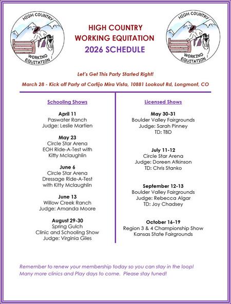 All levels of riders can participate! Any breed and any discipline is welcome!