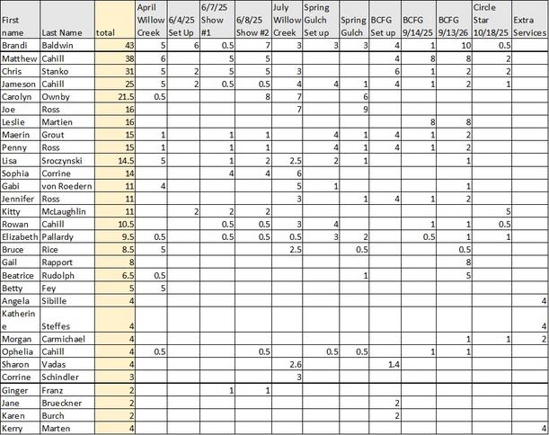 your schedule. We are always needing help to set up, take down,